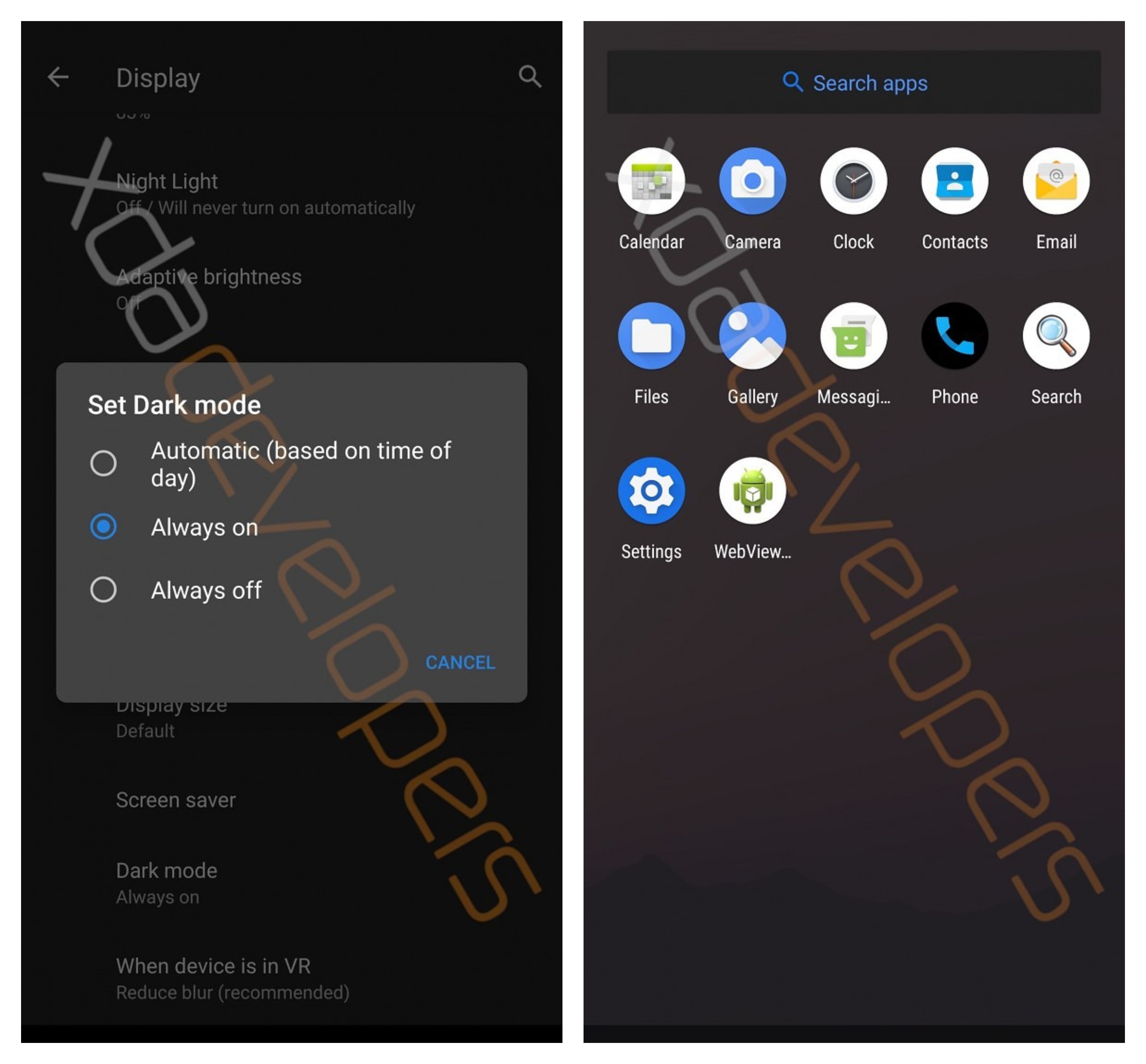 Many of Google’s apps like contact and messages already support dark mode. Those who don’, can be forced to support the dark mode with a new developer option, “override force-dark”