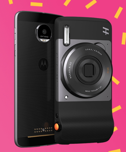 Moto Mods are magnetic cases and accessories that can be attached to the back of a phone to provide auxiliary features. The Moto Mods include JBL SoundBoost, Insta-Share Projector and Hasselblad True Zoom.