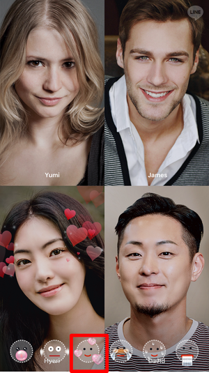 Because of mobile screen constraints, about 4 people are shown at a time on the screen while others appear with their profile picture in small circles on the right side of the screen. Line has also introduced six different filters to make the experience more fun and engaging.