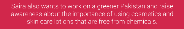 The journey, however, has just begun for Saira. She aims to grow bigger with her business idea. She is in talks with several companies from UK that deal in organic skincare. In the future, she wants to expand her product base, giving her beauty conscious client a range of great products to choose from. She also wants to work on a greener Pakistan and raise awareness about the importance of using cosmetics and skin care lotions that are free from chemicals.