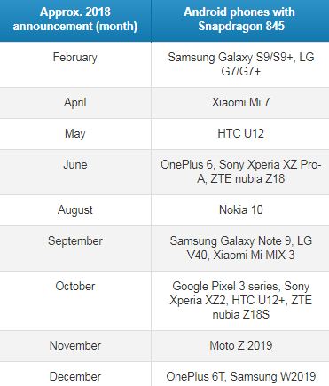 All major phones of 2018 featuring Snapdragon 845 revealed in a new leak