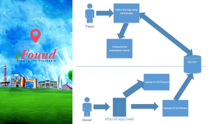 efound.info is both a web and android based application which intend to provide tracking services for stolen and lost objects through scanning QR codes, barcodes, NFC tag or an RFID tag. It will also allow users read or write information against the tag ID in the central database. The application will track a wide range of problems such as