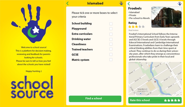 School Source was an Alif Ailaan supported project and the team members for the project included developers – Fatma Faruq, Hanzala Ali Abbas, Muhammad Ubaid, researcher – Asif Ali Khan and designer – Amna Majid.