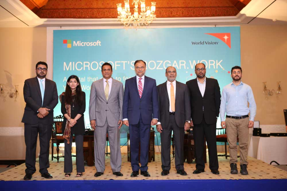 Microsoft, a global leader in technology and innovation along with its implementing partner, World Vision-Pakistan, has launched Rozgar.Work – an Employability and Entrepreneurship Platform. The Rozgar.work platform provides job-seekers with end-to-end career guidance, up skilling, job-matching and mentorship – all centred on a free online hub that brings the best resources together in a bold attempt to address unemployment and underemployment. The platform is powered by Microsoft Windows Azure Cloud, SQL, & SharePoint 2013. The Federal Minister for Planning and Development – Mr. Ahsan Iqbal was the chief guest at the launch ceremony held in the Serena Hotel, Islamabad.