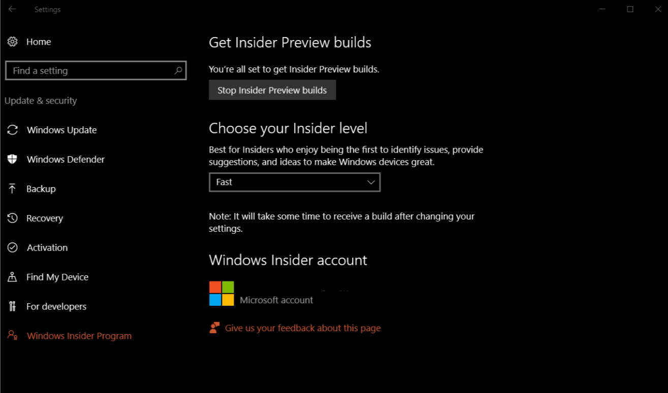 If you are excited to get your hands on this new build and cannot wait for Microsoft to release this to general users, you can go ahead and turn on Insiders build in the Windows 10 update settings.