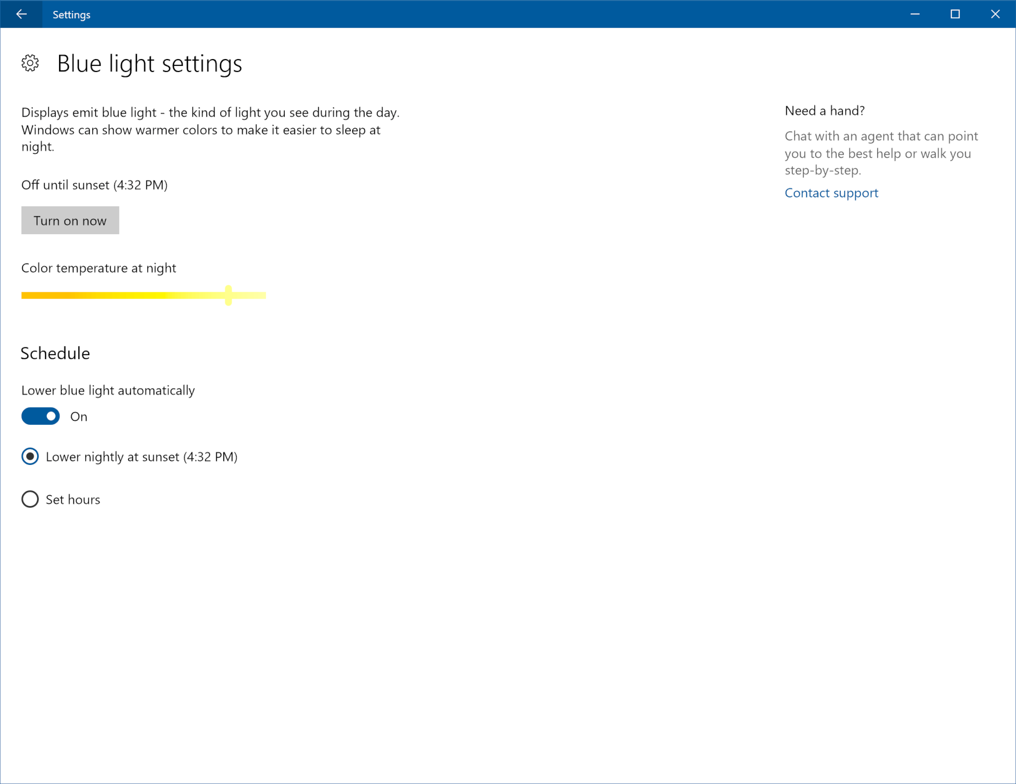 Windows 10 insiders can now also control the amount of blue light being emitted by their PC screen through a new settings option. The option will automatically lower the amount of blue light at night, thus contributing towards a healthier sleeping cycle of the user.