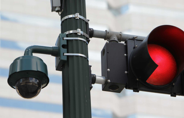 Surveillance camera attached to a traffic light in downtown shown Friday, Aug. 5, 2011, in Houston. The city last year installed 250 to 300 at downtown intersections to prevent and fight terrorism and crime, part of a security initiative sponsored by the U.S. Department of Homeland Security. ( Melissa Phillip / Houston Chronicle )