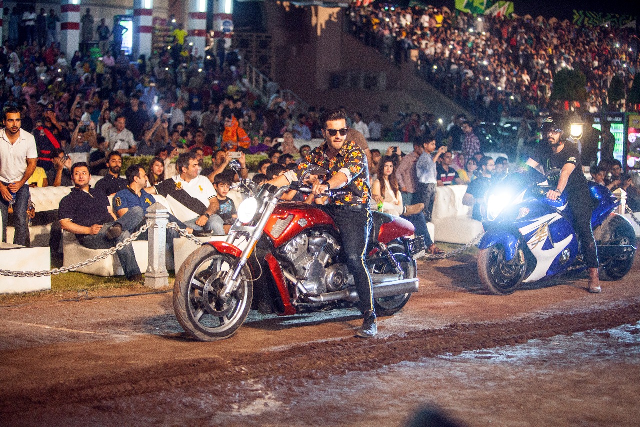 After Karachi, the Dew Moto Extreme event arrived in Lahore to bring heart-thumping action! Feroze Khan opened the show with his own bike and led an action-packed procession of 10 heavy bikers, filling the arena with roars of delights from the audience.
