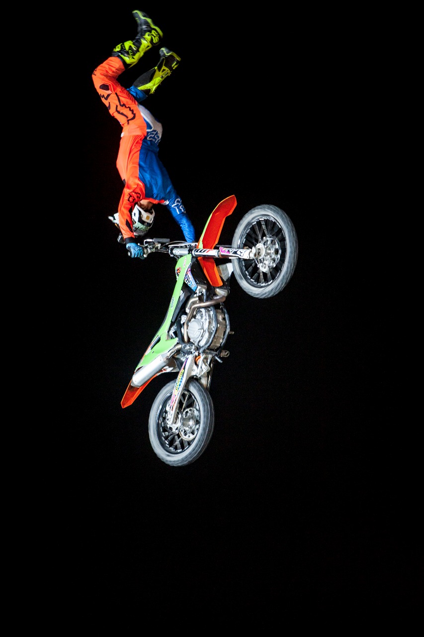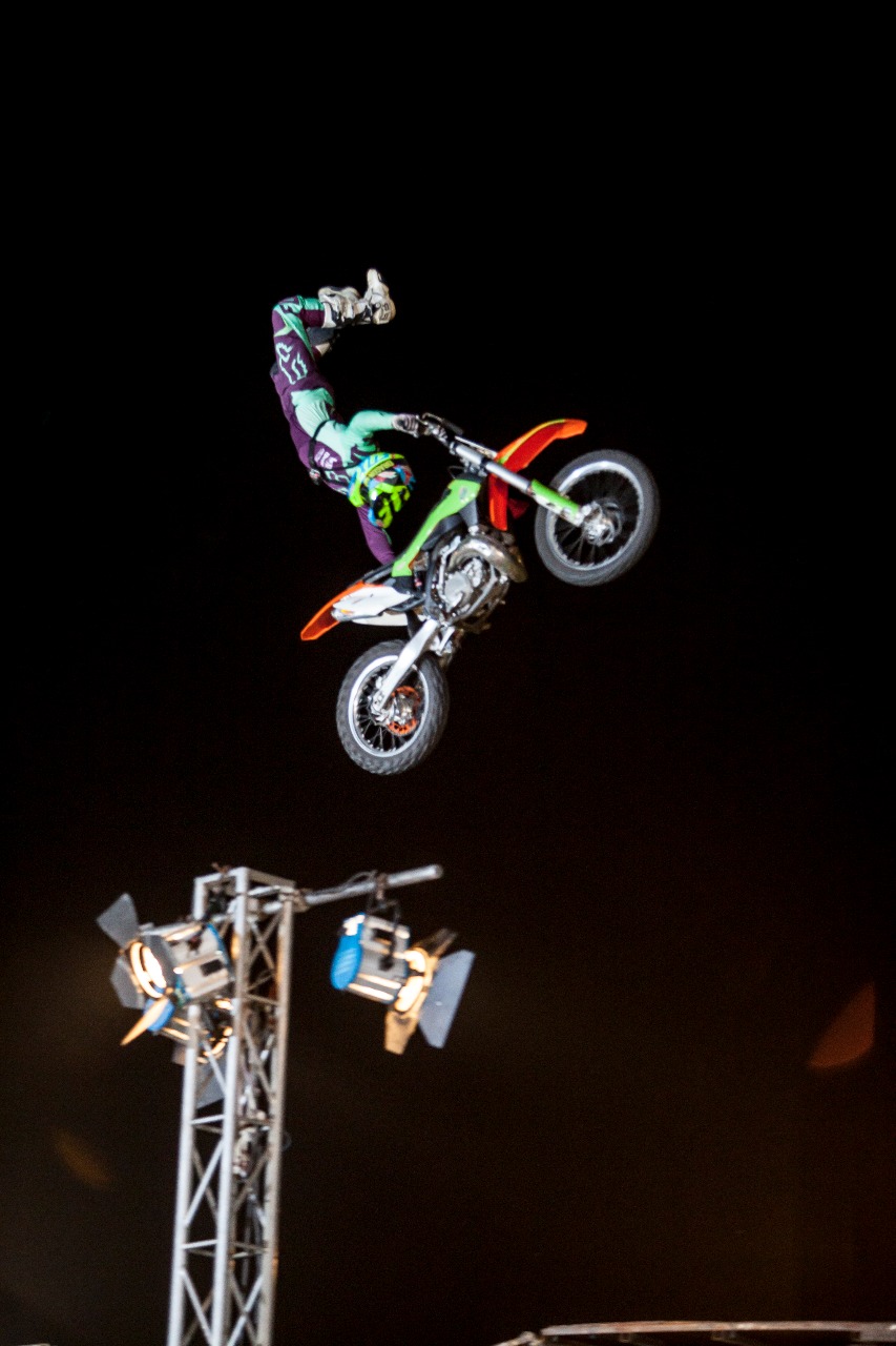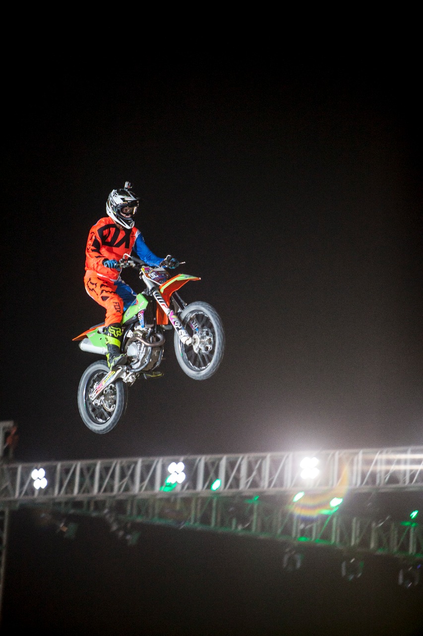 Four international expert Dew athletes took to the arena to perform the impossible EXTREME stunts through the night! There was Dallan Goodman and Nick De Witt from South Africa, Fredrick Frog Bergren from Sweden and Nick De Witt on FMX bikes. Amidst roars of the audience, the bikers flew over the arena and pulled off mid-air somersaults, leaps and jumps! Later, DiDiBizzaro from Italy joined on his superbike: riding on the handlebars and leaving burning tracks on the concrete!