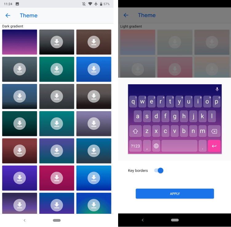 The Gboard keyboard is developed by Google and has various features that make it one of the best in class software keyboard. These include swipe typing, predictive text, making Google search directly from the keyboard and customization. Gradient themes will only expand the customization option and allow users to tweak their keyboard to their liking.
