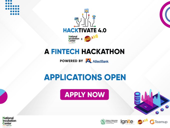 The NIC, under the Hacktivate banner, is organizing a hackathon on fintech – powered by @ABLBankPK, on the 10th and 11th of April 2021.