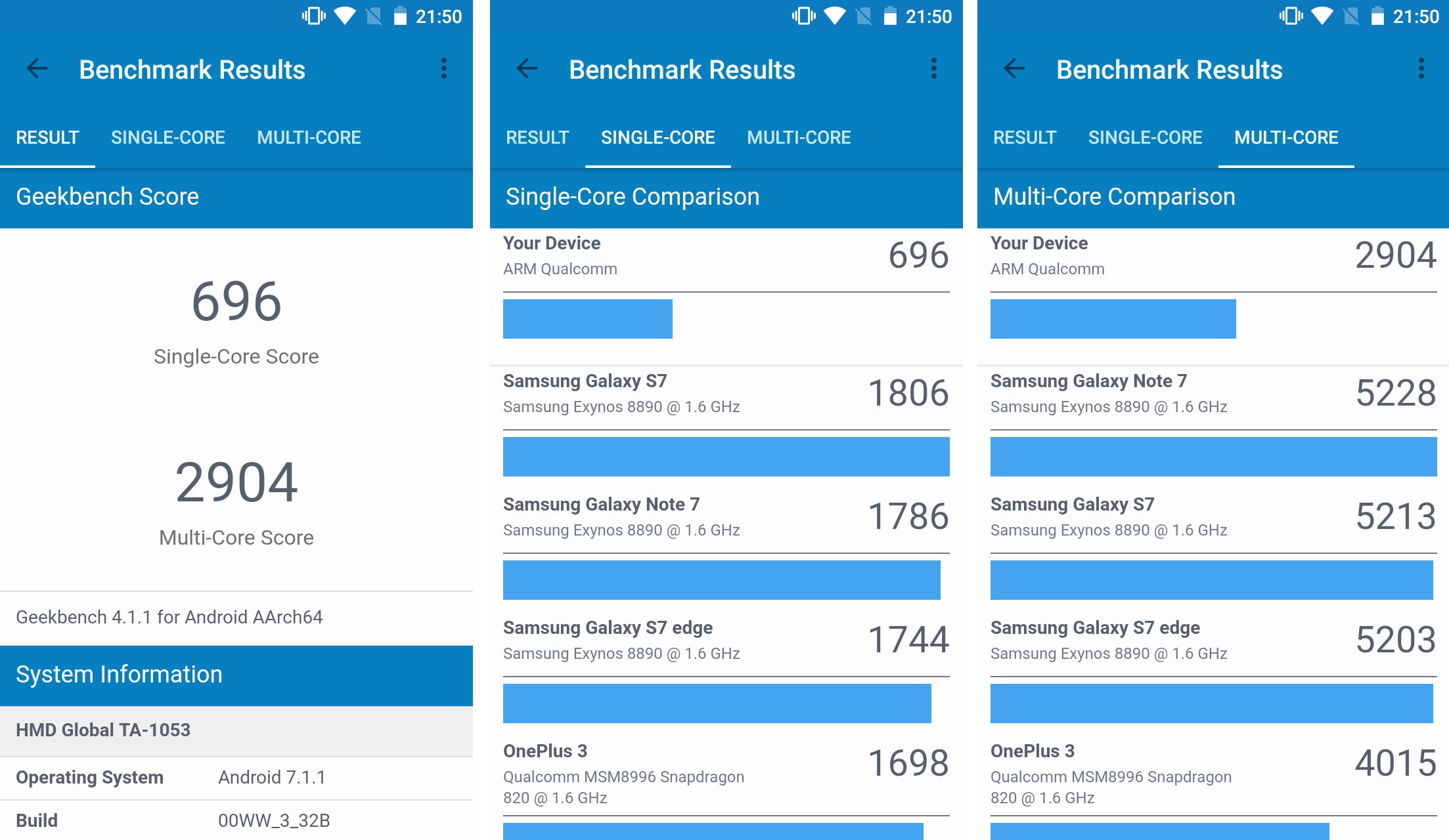 Here are the benchmark results from popular benchmarking application Geekbench.