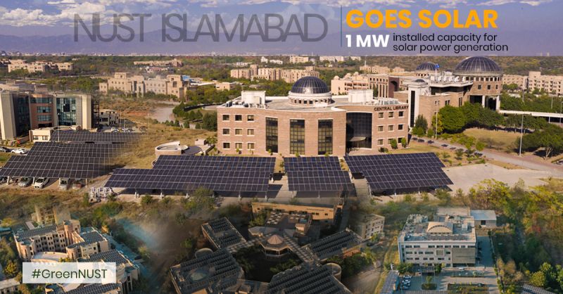 The National University of Sciences and Technology has installed 1 megawatt of solar power generation capacity on its flagship H-12 Islamabad campus as part of its pledge to shift to 100% renewable energy by 2030. The university announced the achievement through its social media channels with the hashtag #GreenNUST.