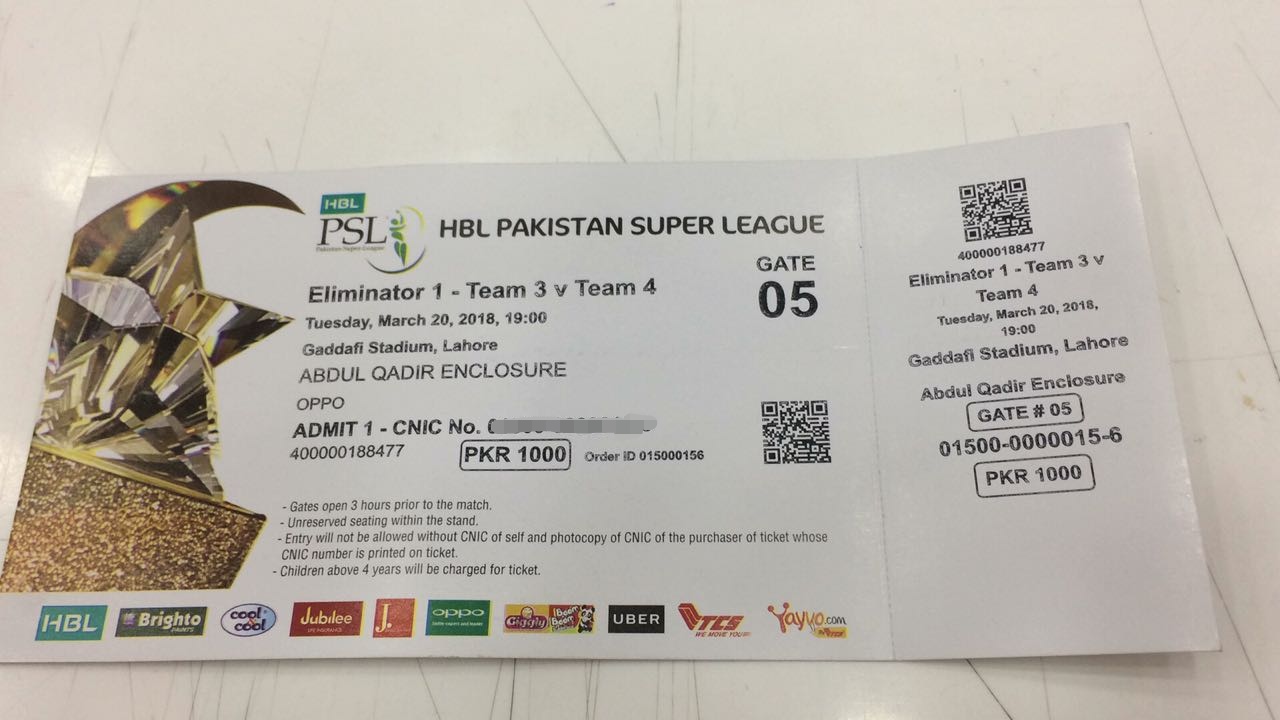 Keeping the negative side of PSL aside, the tournament final will be played at Karachi’s National Stadium on March 25. We want our readers to make sure they have brought it through the official channels only. We have attached a picture of a ticket so that our readers would know about the official ticket.