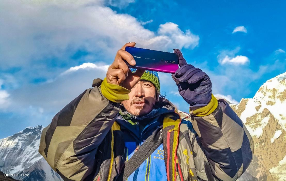 The OPPO F11 Pro took the first-ever mesmerizing pictures of Mt. Everest in its glory and grandeur. The stunning photograph closely captures the breathtaking experience of the trek. The places where the life necessities like food and water are luxuries and climbers have to carry double their weights through the complete trek, F11 Pro proved to be a handy device which as compared to a professional camera offered a wide set of features to capture amazing trekking memories.