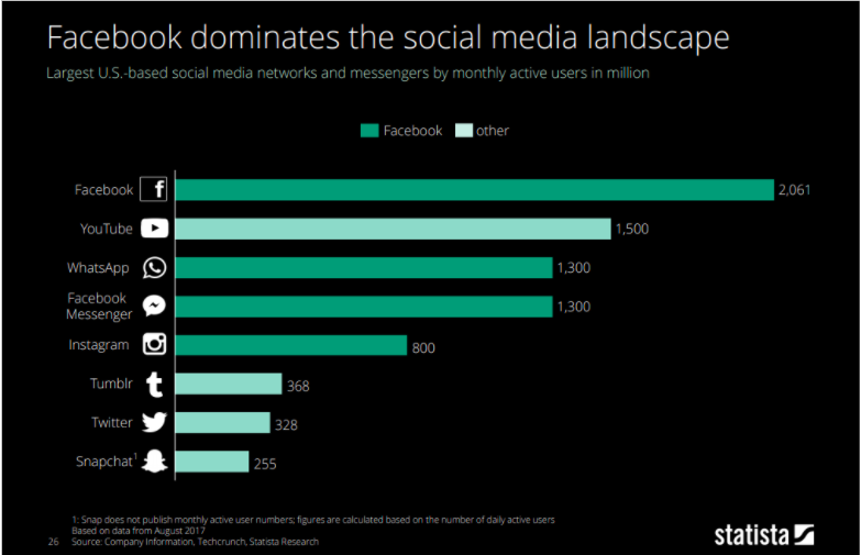 We know that everything can change in an internet every minute, as the research from Statista states, the digital landscape below, shows a comprehensive overview of the role social media, messaging services and the internet have on our lives.