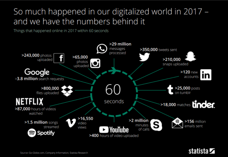 These number of messages, pictures, and emails shared across the web and social media every minute are quite shocking.