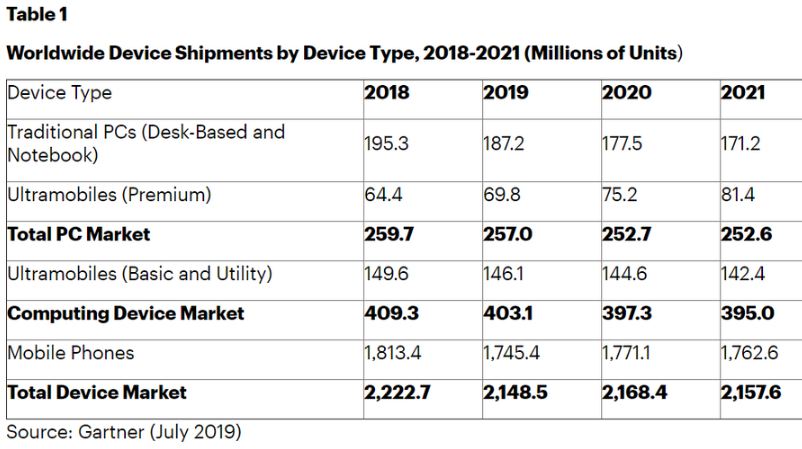 According to research agency Gartner, sales of devices (PCs, tablets and mobile phones) will fall by 3.3 percent in 2019 to make it overall 2.2 billion units. The decrease has been attributed largely to the increasing lifespan of mobile devices, an issue highlighted by a perceived lack of innovation within the market.