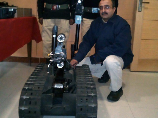 Complementing the robot is a 2.5 million PKR air-conditioned control room that has been set up to accommodate the bomb disposal equipment. Equipped with electronic robots and water cannons that can be used to diffuse explosives with water, the room has a standby power supply system that will allow it to run for three days in case of emergency.