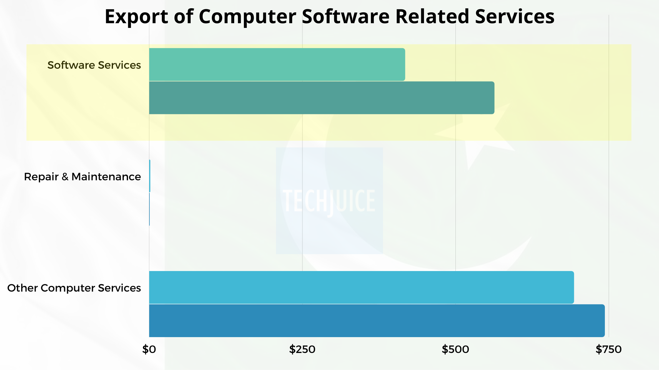 Amongst the computer software service industry, exports of repair and maintenance services actually decreased from $1.446 million last year to $0.662 million this fiscal year. Other computer software services, however, saw a good 7.25 percent increase and rose from $693 million to $743.230 million.