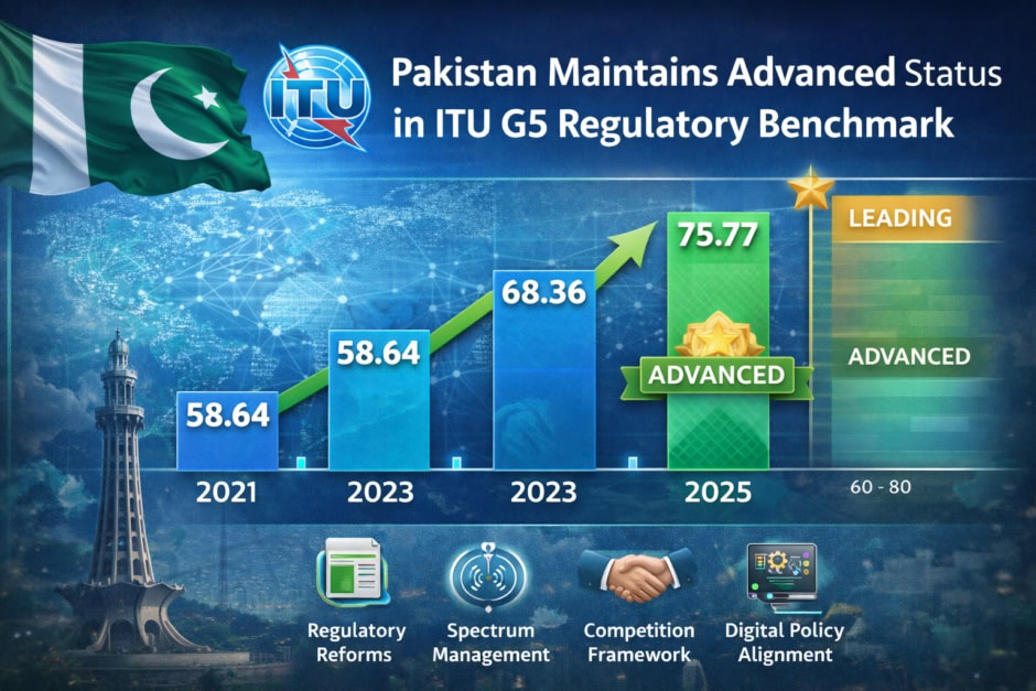 Pakistan has retained its position as a Fifth-Generation (G5) telecommunications regulator, achieving an overall score of 75.77 in the ITU G5 Regulatory Benchmark 2025. The ranking reflects the country’s ongoing improvements in regulatory reforms, spectrum management, competition framework, and digital policy alignment.