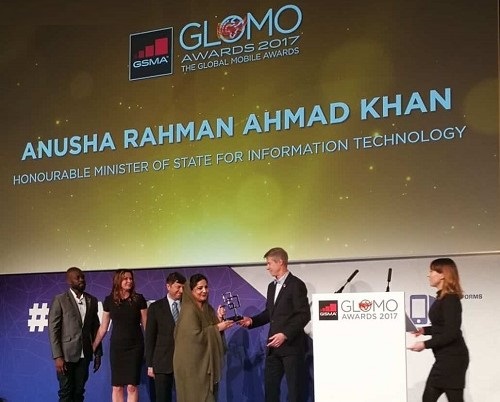 The Glomo (Global Mobile) Awards are a part of Mobile World Congress happening in Barcelona, Spain. The Minister of IT and Telecom, Ms. Anusha Rehman received the award on the behalf of Pakistan. She has been invited by the GSMA to participate in the Annual GSMA Ministerial Programme 2017 at Mobile World Congress 2017.