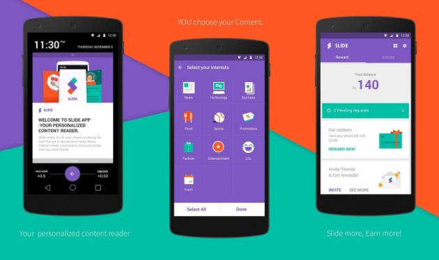Another interesting feature in Slide that keeps users hooked is that it offers rewards to its users for basically even using the app. For every article that you read via Slide, your rewards keep on increasing. Once a substantial amount has been accumulated you can use it to avail mobile balance etc.