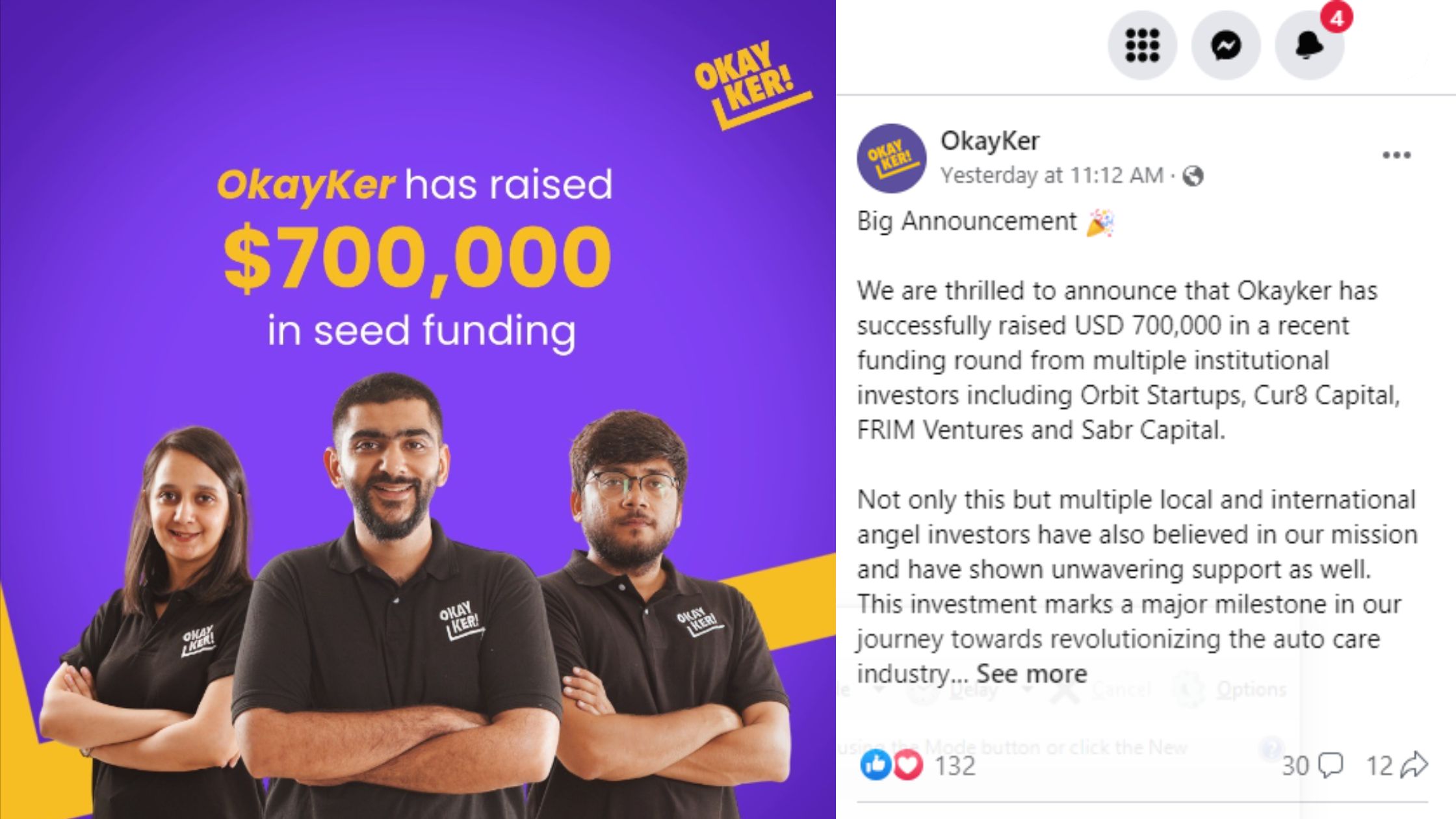 “We are thrilled to announce that Okayker has successfully raised USD 700,000 in a recent funding round from multiple institutional investors including Orbit Startups, Cur8 Capital, FRIM Ventures and Sabr Capital,” said team OkayKer in a recent Facebook post.