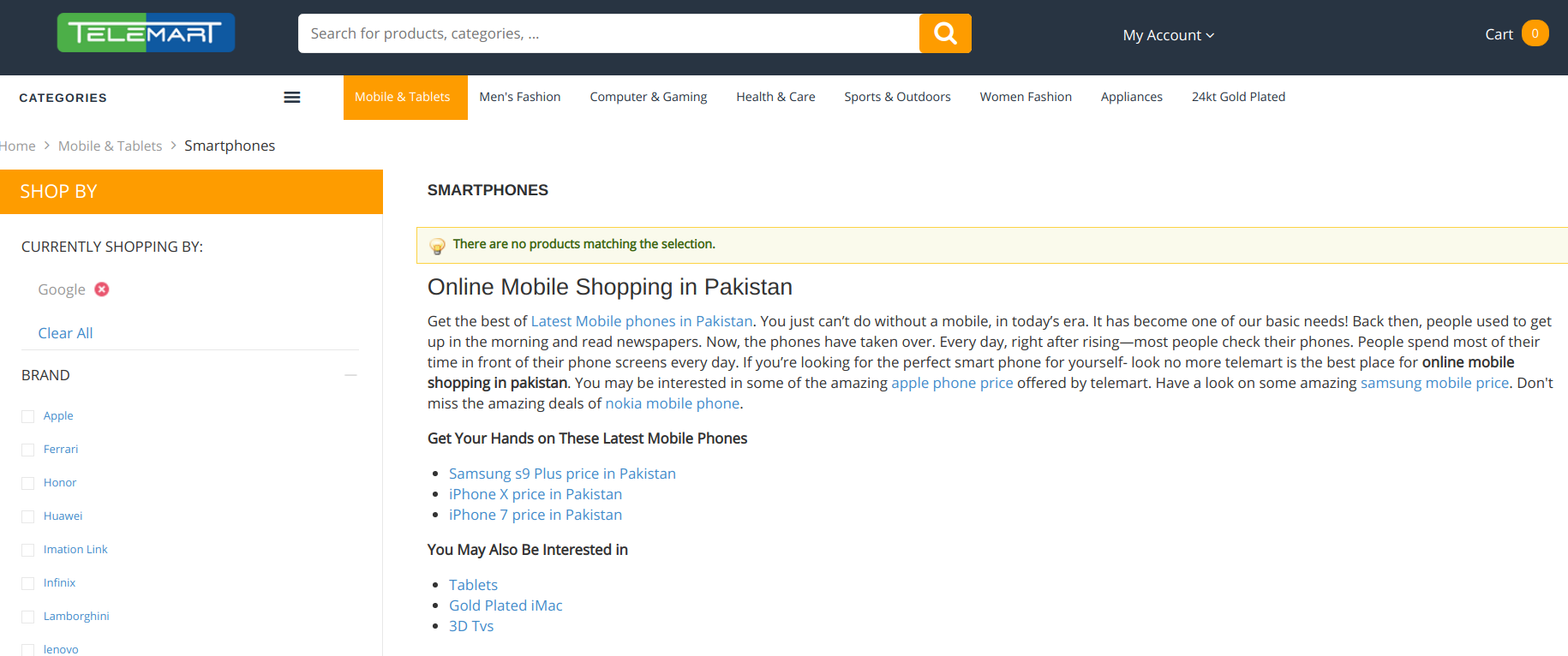 We have checked that all popular shopping sites including Daraz, Telemart, and iShopping have removed all iPhones and Pixel phones from their catalog. Search for iPhone on these sites returns only cases and accessories for iPhones at the moment, with no information about recent devices released by Apple and their price in Pakistan.