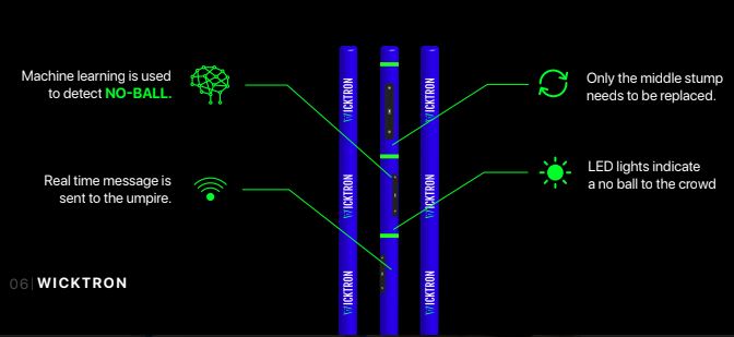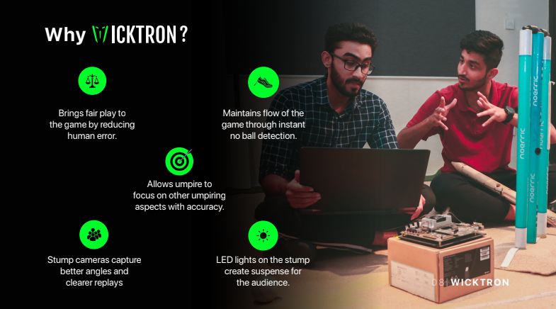 Pioneering in this field, the Wicktron-Watch pair aims at a breakthrough by tackling the human-related errors made by the umpires. The solution maintains the flow of the match as the need for having the reviews of shots is also eliminated. This product also helps save time by preventing subsequent erroneous decisions like LBW, and catch out as an instant indication of a no-ball can be made with high precision.