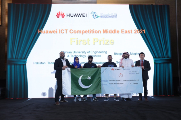 This year marked the sixth iteration of the Huawei ICT Middle East Competition in collaboration with the Higher Education Commission of Pakistan. The competition is a Huawei annual ICT initiative, designed to nurture global ICT talent. On 23rd December, winners were announced and Pakistan’s team one consisting of Sateesh Kumar, Iqra Fatima, and Bhagchand Meghwar along with their instructor Dr. Faheem Khuhawar Instructor won 1st prize of 20,000 USD. Not only so, the 2nd prize was also grabbed by Pakistan’s team two consisting of Hafiz Rizwan, Adnan Ali, and Mukhtar Memon along with their instructor. Team Jordan won the third prize in the competition.