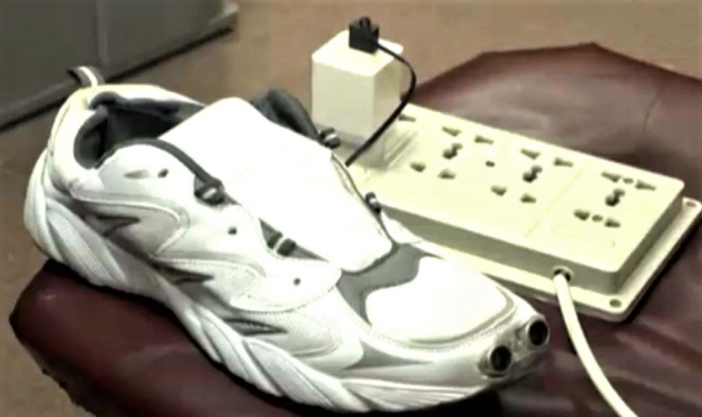 These shoes were made as a part of a university project and are fitted with a detection system that can detect any hurdles within a 200 cm radius (2 metres). The user puts them on like any other pair of shoes and the shoes, upon detecting a hurdle within a 200cm radius, alarm the wearer of this hurdle by vibrating.