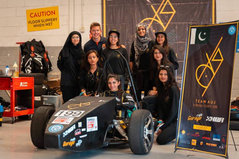 The team was cheered with a standing ovation and received a global fame in the award ceremony for being the first ever all-girl team in the history of Formula Student UK. The all-women team consisted of Aatrah Rauf Shaikh, Harim Akhtar, Azka Athar, Fatima Sohail, Cybil Braganza, Zoiba Noor, Wardah Jamal, Laiba Rodyna, Syeda Al Aima Zahra and Sabah Zaman. All of them have been honored with the Spirit of Formula Student Award.