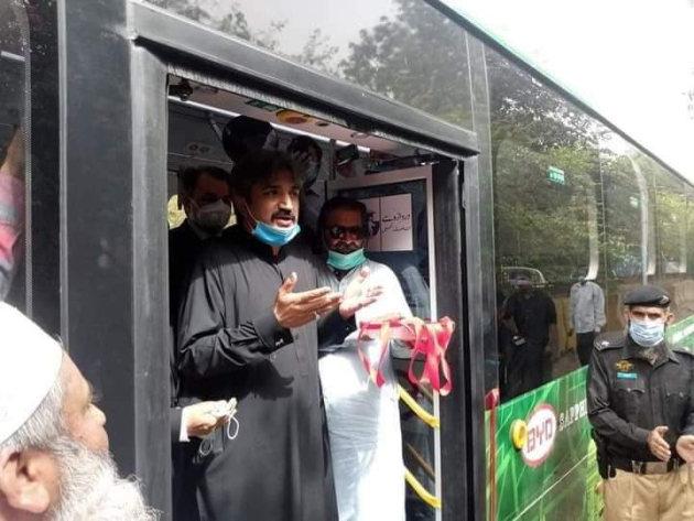 In a historic moment for the nation’s transport industry, Sindh Transport Minister Syed Owais Shah launched Pakistan’s first electric bus in Karachi today.