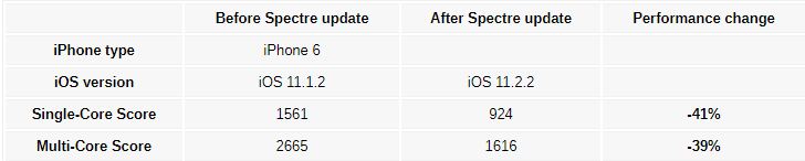 Performance of iPhone 6 reduced by 40% after Spectre patch