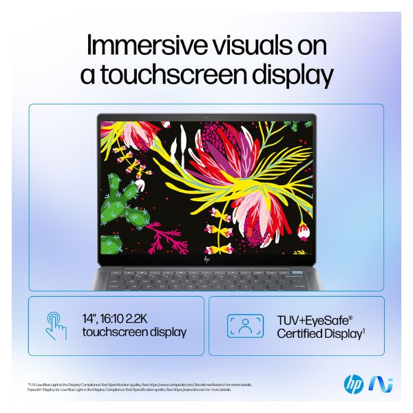 14″ diagonal, 2.2K (2240 x 1400), multitouch-enabled, IPS, edge-to-edge glass, micro-edge, Corning® Gorilla® Glass NBT™, Low Blue Light, 400 nits, low power, 100% sRGB[17,29]