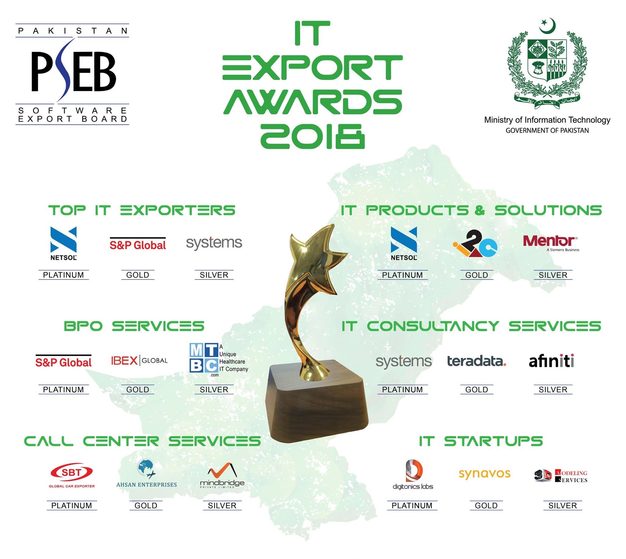 PSEB IT Export Awards is an immensely important yearly event in which Pakistan’s top IT exporters are recognized for their contributions to Pakistan’s economy and therefore to the growth of the IT Industry in Pakistan. These exporters contribute to projecting Pakistan as a vibrant and dynamic nation brimming with top-notch talent and high-end expertise.