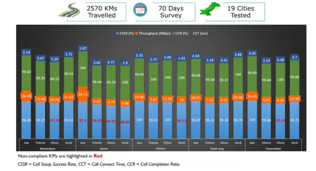 Conducted by the Pakistan Telecommunication Authority (PTA) over 70 days during Q2 2025, the independent quality assessment spanned 19 cities across Khyber Pakhtunkhwa, Punjab, and Sindh, covering 2,570 km of drive routes.