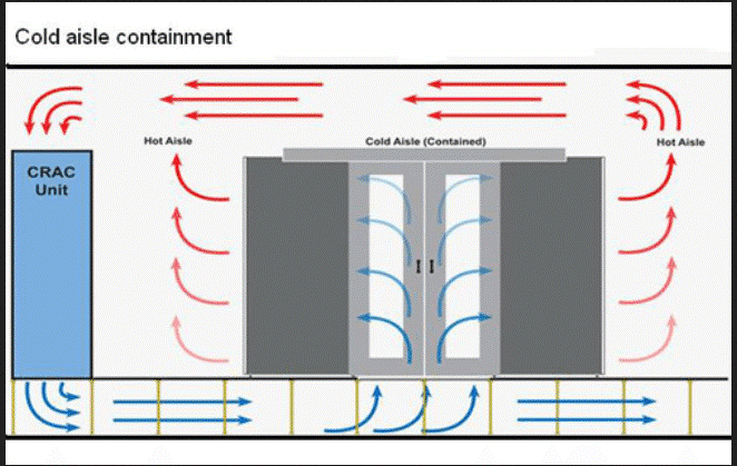 A cold aisle containment encloses the cold air in front of rack rows in the shape of a room having doors at both ends of the aisle. With this arrangement, the hot and cold airstreams are separated. The temperature of the rest of the room can be set at a higher point thus, reducing the additional load on cooling units. A well-sealed cold aisle containment system offers a better thermal environment for the ICT equipment. It is expected that the ICT equipment’s ability to pull the air through the cooling unit increases with the proper sealed and a bit pressurized contained aisle.
