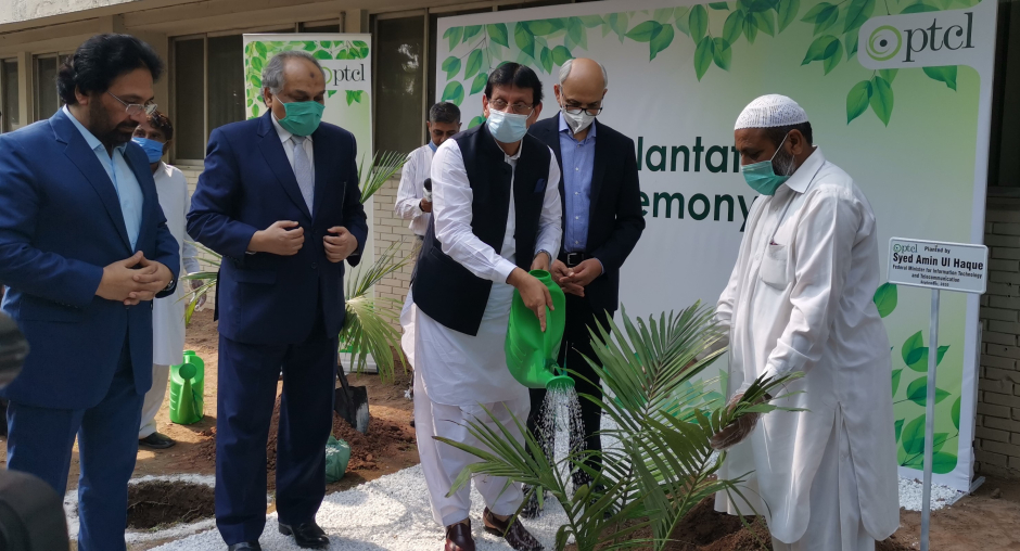 PTCL hosts Federal Minister & Secretary MoITT for tree plantation drive