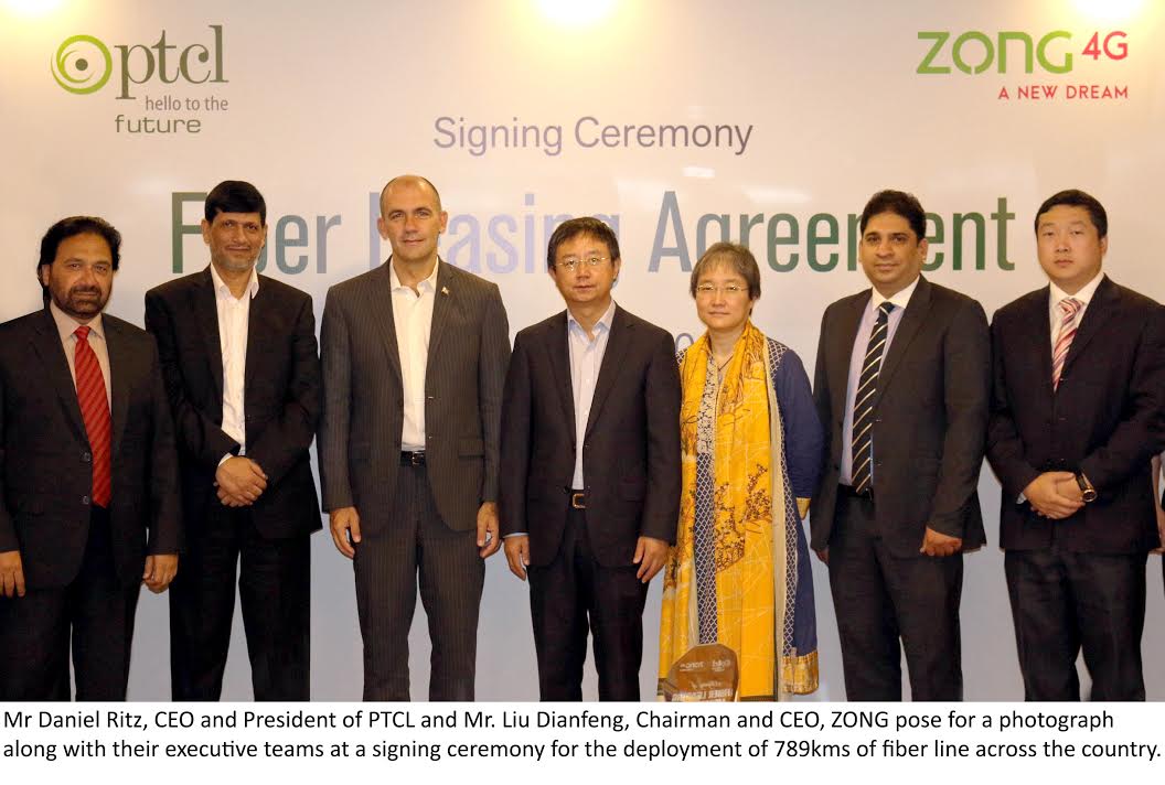 Pakistan Telecommunication Company Limited (PTCL) and Zong have signed a fiber leasing agreement. Based on this, PTCL will deploy 789 km of a fiber line for Zong which they hope will better the telecommunication services for the Pakistani market.