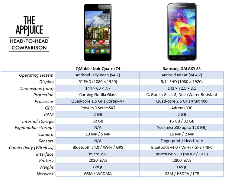 QMobile Noir Z4 vs. Samsung GALAXY S5: Battle of the Flagships