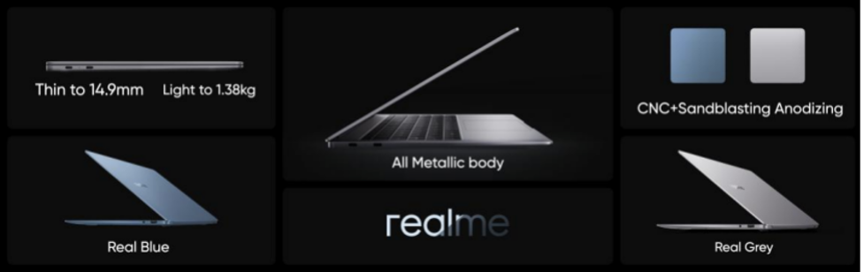 As realme’s first laptop, the realme Book is encased in a super-slim 14.9mm metal body, available in blue and grey color schemes.