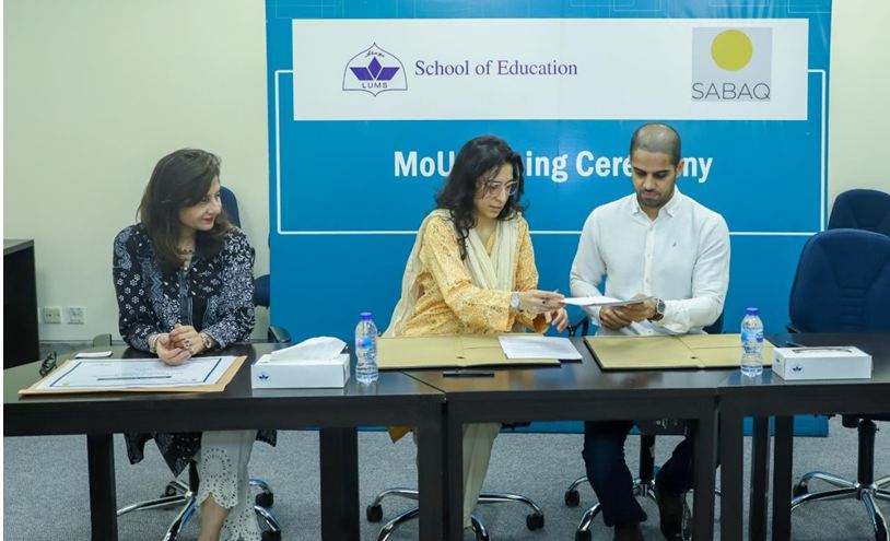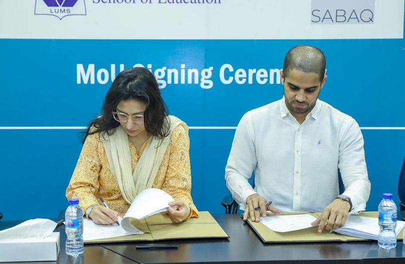 Award-winning EdTech enterprise SABAQ, and Lahore University of Management Sciences (LUMS) have signed a memorandum of understanding (MoU) to collaborate for research and outreach purposes in order to contribute towards building a robust education ecosystem in Pakistan. The MoU was signed by Mr. Hassan Bin Rizwan, CEO & Co-founder of SABAQ, and Dr. Mariam Chughtai, Associate Dean and Assistant Professor at the LUMS School of Education.