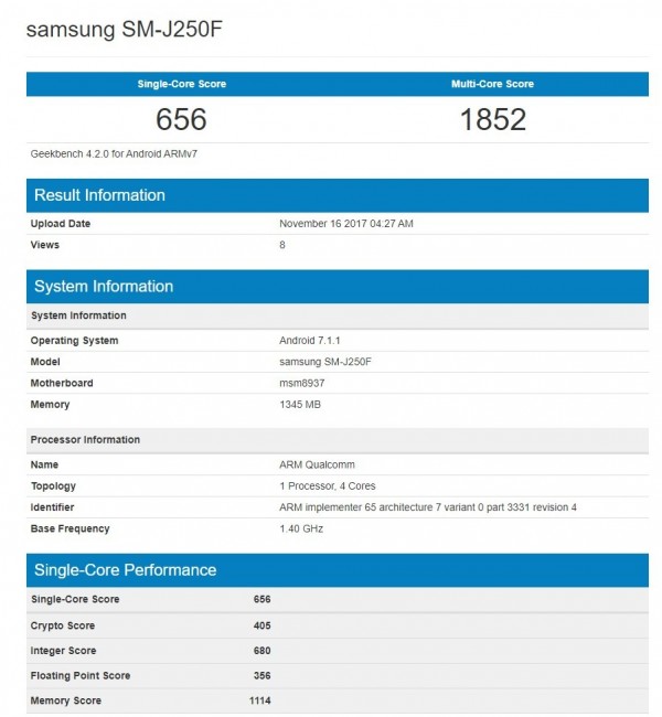 Well, Galaxy J2 series is one such series as it comes in an ultra-affordable price section. Samsung makes a Galaxy J2 phone every year and the Galaxy J2 2018 has been leaked in a new benchmark report. According to the leak, it will come with a Snapdragon 430 chipset. It is a chipset featured in both mid-range and low-end phones. It comes with a Quad Core CPU and Adreno 505 GPU. The chipset supports high-speed LTE connectivity as well. The chipset also supports Qualcomm QuickCharge 3.0 but it is not sure if Samsung enables it for their phone or not.