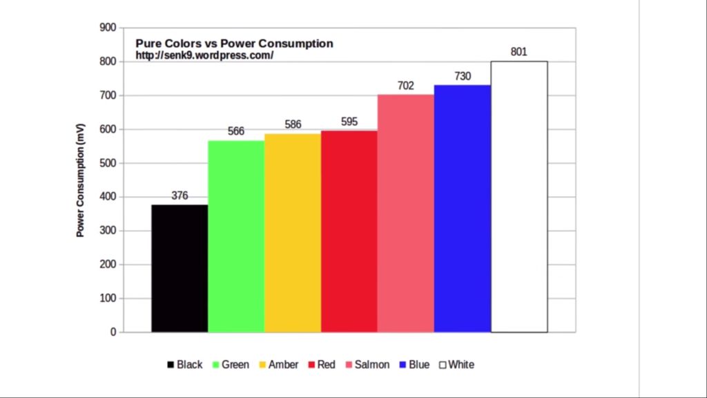As seen from the graph, the difference in power consumption between the two colors is quite significant. This is a major reason why Google and Apple are working on dark modes for the next iteration of their OS and why Apple will be completely shifting to OLED displays in 2020. Since LCD displays light up the entire display panel compared to OLED panels which completely turn off the black areas on the screen.