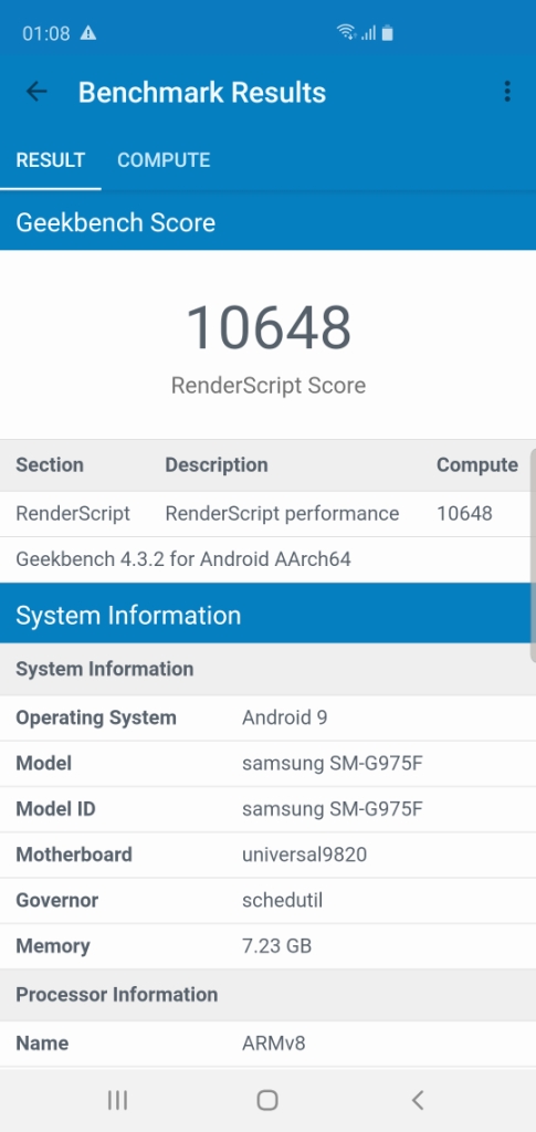 As you can see the Exynos 9820 performs much better than its Snapdragon in Single score in the Geekbench 4 test, however its lags behind the Snapdragon 855 in Multi-Core score. The Exynos 9820 also performs and scores considerably well in the RenderScript score as well.