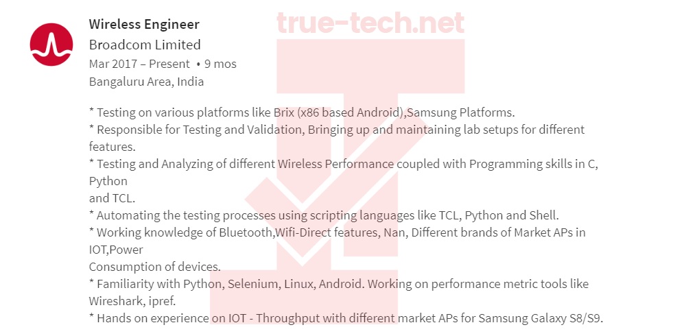 The second leak comes from an Indian wireless engineer working at Broadcom. He claims to have worked on wireless for the Galaxy S9, focused particularly on the Internet of Things. Samsung’s known for its interest in the platform, especially since the Korean tech giant manufacturers nearly every consumer electronics out there.