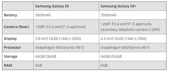 Samsung Galaxy S9 and Galaxy S9+, Similarities and Differences
