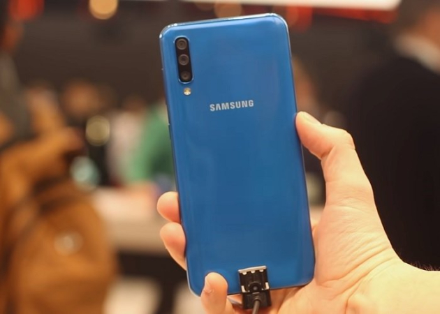 The Galaxy A70 comes with a 3D glasstic design with a waterdrop-style notch, and a slight chin at the bottom of the display. At the back, the phone features a triple camera setup, vertically aligned with the flash sitting beneath the sensors. The volume button and the power buttons are present on the right edge of the phone. The phone is available in Coral, Blue, Black, and White edition.